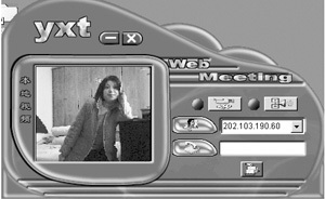 視頻目錄服務(wù)器的IP地址已在主界面中顯示,如“202.103.190.60”。你只需點擊前面有兩個人頭像的“連接目錄服務(wù)器”按鈕,就可以登錄視頻目錄服務(wù)器。這時你可看到所有登錄者的信息。如果你想同哪位朋友聊天,你可用鼠標雙擊你想與之聊天的朋友的信息,WebMeeting會馬上為你進行聯(lián)系,接通后響起一陣電話鈴聲并會彈出一個名為“遠程視頻”的窗口,對方的視頻畫面會顯示在其中。用它來跟千里之外的朋友進行溝通真是方便,筆者就嘗試用它來進行QQ朋友“相面”;舉行遠程朋友聚會;親身示范教別人學(xué)習電腦使用及解決電腦故障;了解異地商品優(yōu)劣;欣賞異地風光(將攝像頭對準大街);甚至還可來個重要事件現(xiàn)場直播等等。