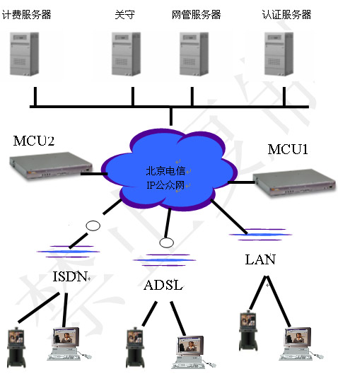 H.323協(xié)議的視訊平臺(tái)包括兩個(gè)層面:視訊交換網(wǎng)絡(luò)和運(yùn)營(yíng)支撐網(wǎng)絡(luò)。視訊交換網(wǎng)絡(luò)包括MCU、Gatekeeper、Gateway、終端等。運(yùn)營(yíng)支撐網(wǎng)絡(luò)包括網(wǎng)絡(luò)管理系統(tǒng)、認(rèn)證計(jì)費(fèi)系統(tǒng)、資源管理系統(tǒng)、會(huì)議控制系統(tǒng)、用戶管理系統(tǒng)、客戶服務(wù)系統(tǒng)等。