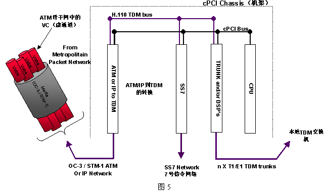 圖5是NMS公司的VoATM典型網(wǎng)關結(jié)構(gòu)。