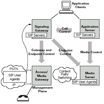 許多語音服務(wù)都是由媒體服務(wù)器提供的。例如,一個(gè)客戶給某個(gè)電子商務(wù)網(wǎng)站打電話會(huì)被接到一個(gè)自動(dòng)語音應(yīng)答(IVR)上或者自動(dòng)總機(jī)上。這些應(yīng)用使用了語音,語音識(shí)別和音頻等功能,都是運(yùn)行在媒體服務(wù)器上的。在下一代網(wǎng)絡(luò)的實(shí)現(xiàn)中,媒體服務(wù)器就象是另一個(gè)電話(或者說,一個(gè)SIP的終端)。因此,他們可以享受和用戶一樣的SIP的優(yōu)點(diǎn)。